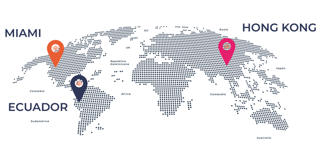 Contamos con sedes en países como Miami, Hong kong y Ecuador. Esto nos permite el conocimiento de distintos mercados y la adaptación efectiva en cada uno de los mismos.