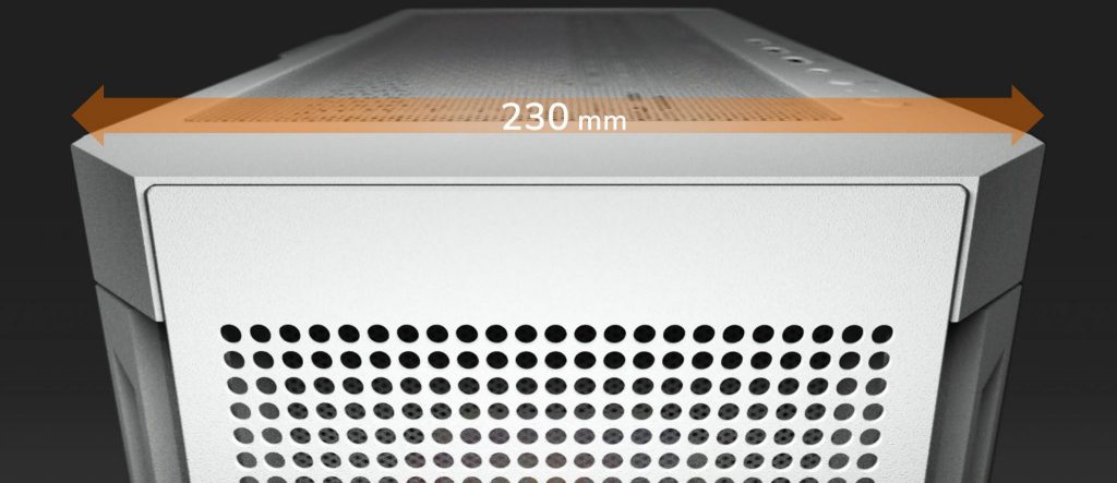El diseño de 230mm de cuerpo ancho de Duoface RGB permite un espacio interior mucho mayor con un mejor rendimiento de refrigeración y organización de cables. Tiene capacidad para una placa base E-ATX, una tarjeta gráfica de 330 mm, dos discos duros de 3,5″ y dos discos duros SSD de 2,5″, lo que permite construir los sistemas más extremos.