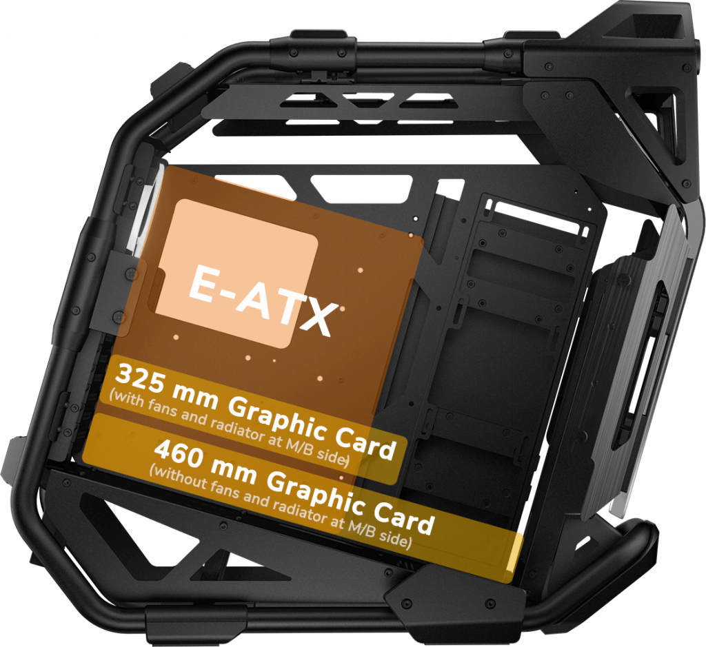 | Max. Longitud de la Tarjeta Gráfica | 460 (mm) / 18.1 (in) sin ventiladores y radiador en el lado M/B 325 (mm) / 12.8 (in) con ventiladores y radiador en el lado M/B | |
