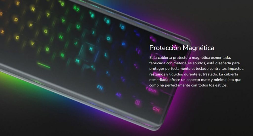 Diseñado con un factor de forma del 60%, Puri Mini RGB es estupendo para ganar mucho espacio en su mesa y llevarlo fácilmente a cualquier parte. Su diseño compacto te permite colocar fácilmente el teclado y dejar más espacio para el ratón para tener una postura más cómoda y ergonómica para los juegos.